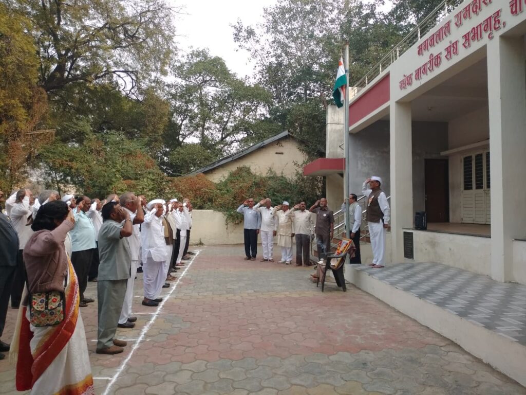 चोपडा (प्रतिनिधी) शहरातील नारायणवाडी भागात असलेल्या ज्येष्ठ नागरिक संघ कार्यालयात 26 जानेवारी रोजी सकाळी आठ वाजून पंधरा मिनिटांनी संघाचे अध्यक्ष जयदेव देशमुख यांच्या हस्ते ध्वजारोहण करण्यात आले.