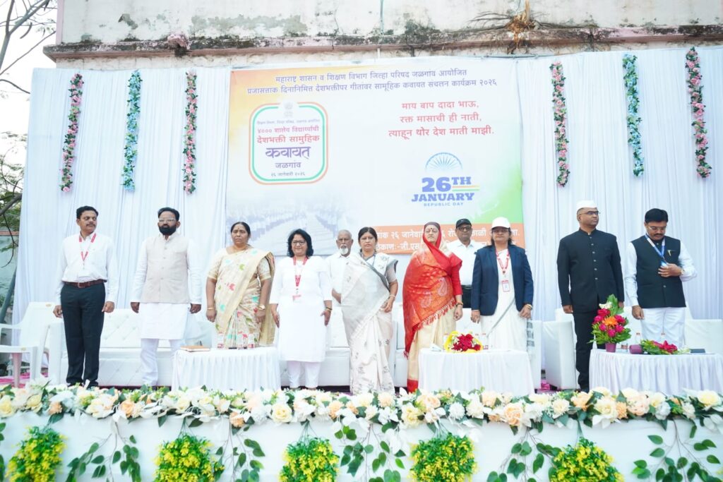 जळगाव (जिमाका / अनिलकुमार पालीवाल) : प्रजासत्ताक दिनानिमित्त राज्याचे शिक्षण मंत्री दादा भुसे यांच्या संकल्पनेतून जळगाव शहरात सामुदायिक कवायतीचा कार्यक्रम उत्साहात पार पडला.